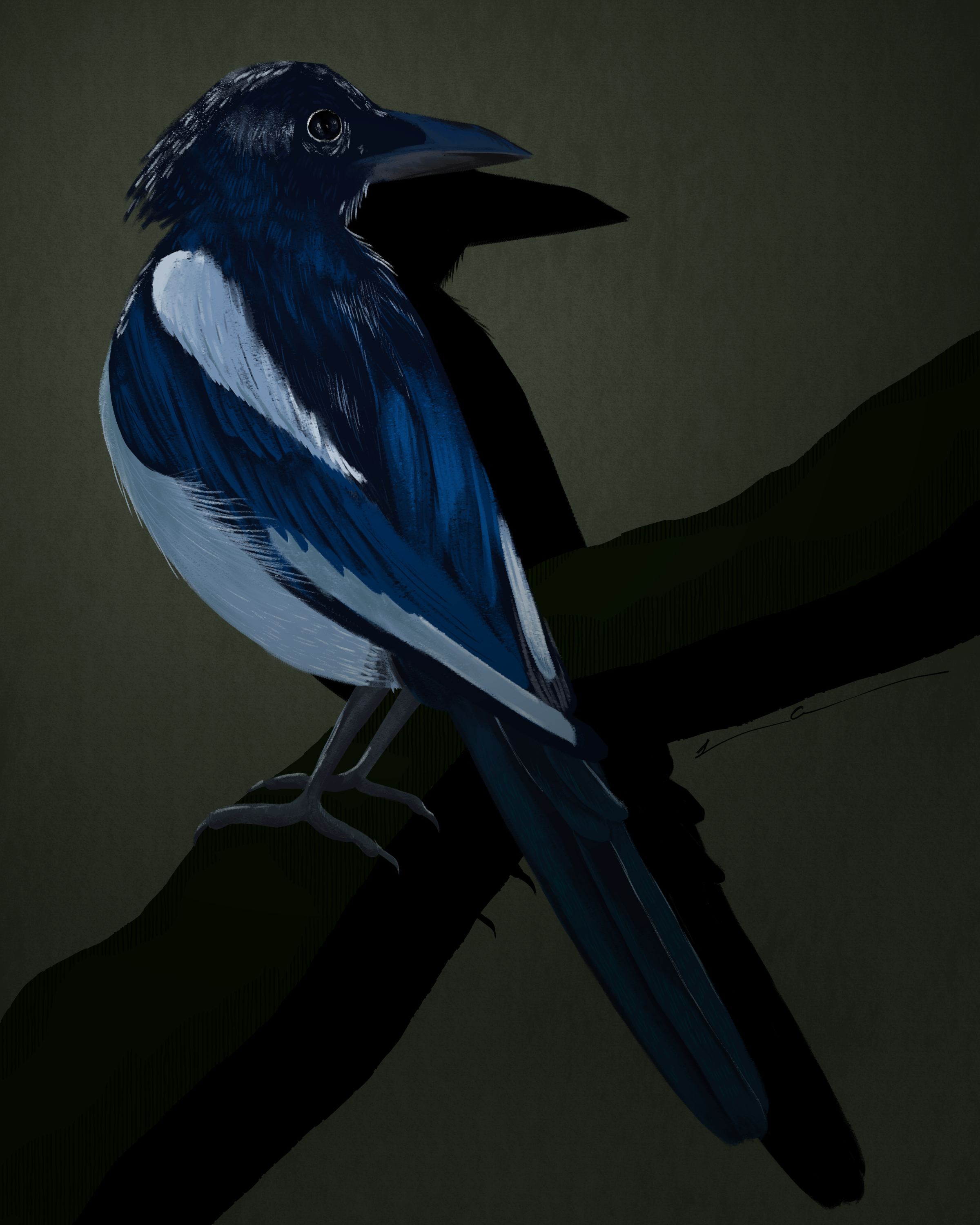 gift digital painting of european magpie